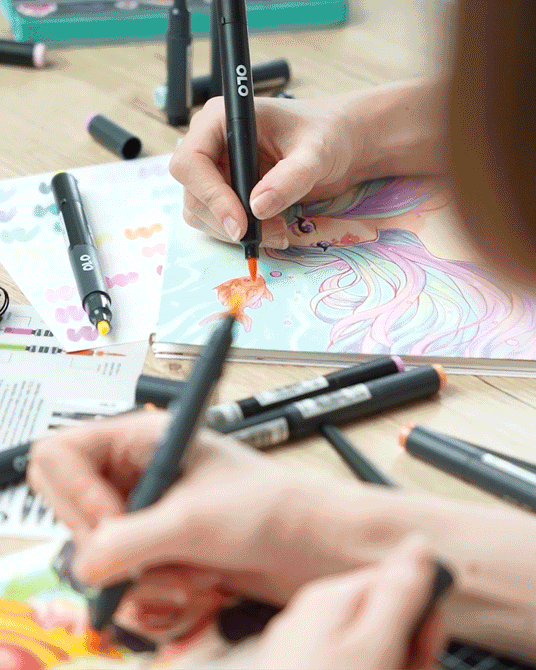 Thanks to OLO’s patented technology, each OLO™ marker delivers up to twice the amount of usable ink compared to other alcohol markers. Combine that with OLO’s thoughtfully engineered design, and you enjoy longer-lasting markers, customizable color combinations, and the convenience of compact storage—just a few of the many benefits OLO offers to elevate your creative process.