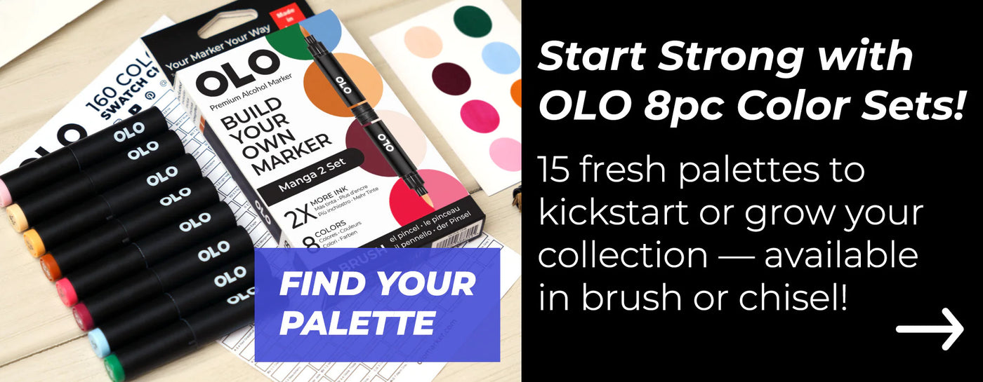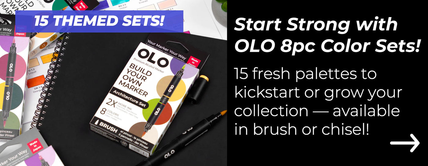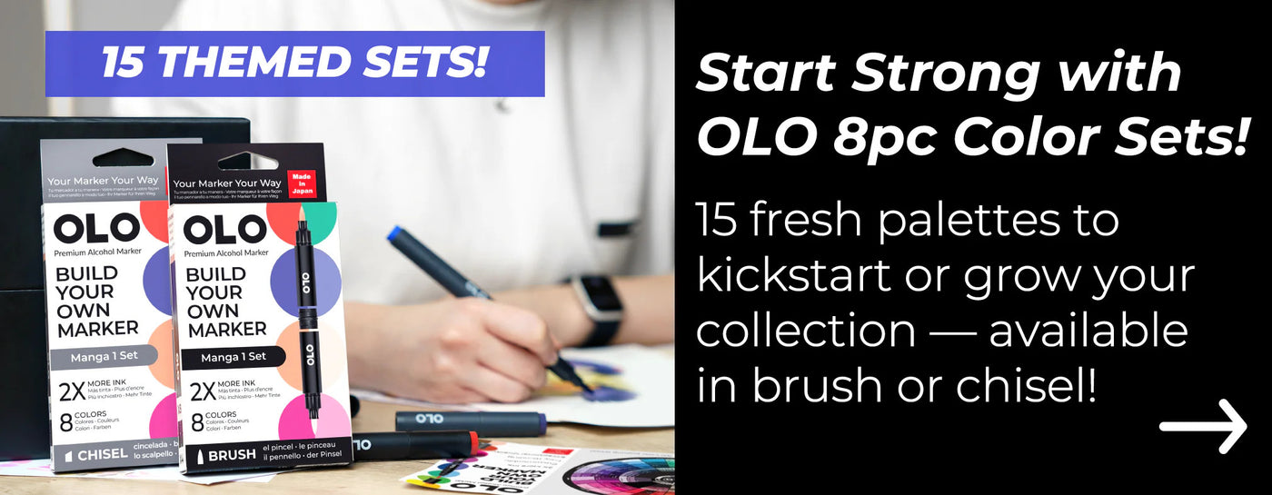Thanks to OLO’s patented technology, each OLO™ marker delivers up to twice the amount of usable ink compared to other alcohol markers. Combine that with OLO’s thoughtfully engineered design, and you enjoy longer-lasting markers, customizable color combinations, and the convenience of compact storage—just a few of the many benefits OLO offers to elevate your creative process.